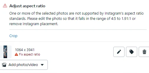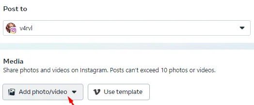 Click “Add photo/video” select your AI-generated image with the specified dimensions, and upload it from your desktop.